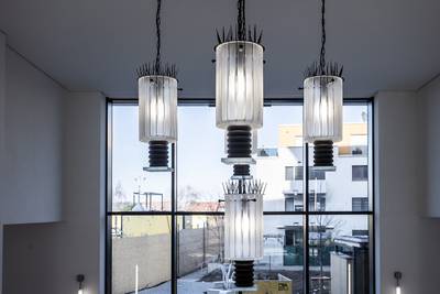 furniture for the foyer of the PARVI apartment complex, reception and Magnifo chandelier lighting